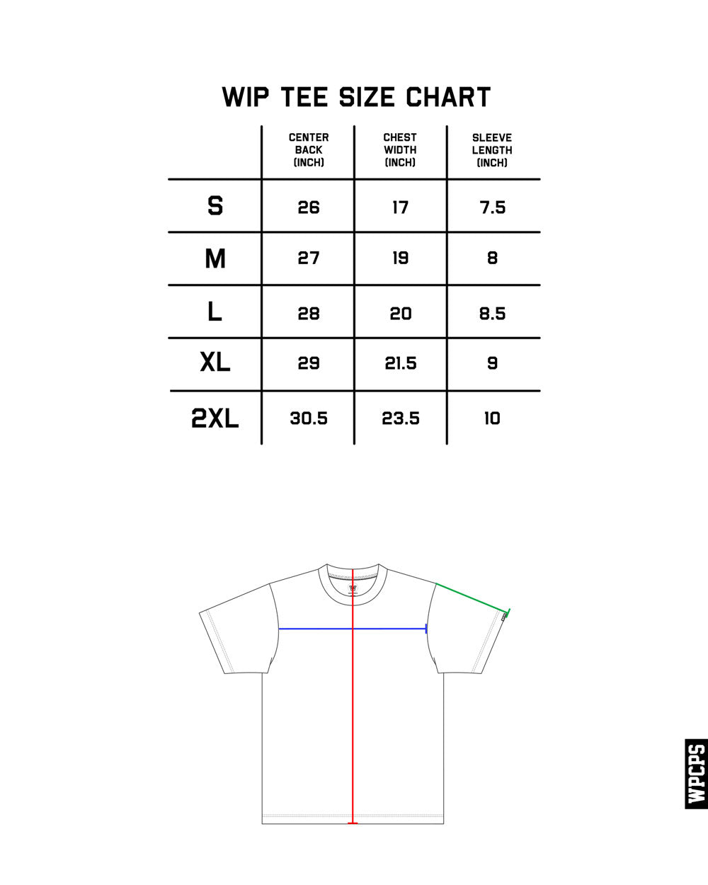 - Printed WIP branding & care label + sewn on sleeve label